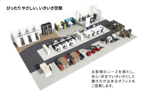 お客様のビジネススタイルやニーズを製品に反映させるソリューションビジネス、施工や環境の維持改善、さらにオフィスの移転からアフターサービスまで一貫して提案する。それが私たちの販売姿勢です。