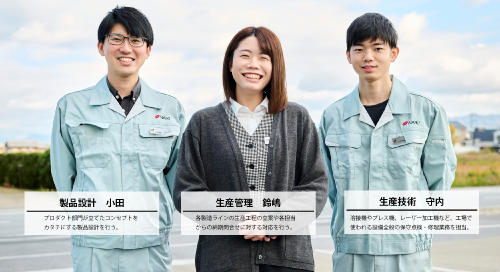 部署の垣根を超えたチームワークこそ、お客様への柔軟な対応につながる――。彦根工場で活躍する3名に話を聞きました