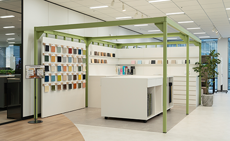 ショールームの中にコーディネートルームを設置。大判サンプルを用意しておりますので実物を見比べながら様々なコーディネートを検討していただけます。