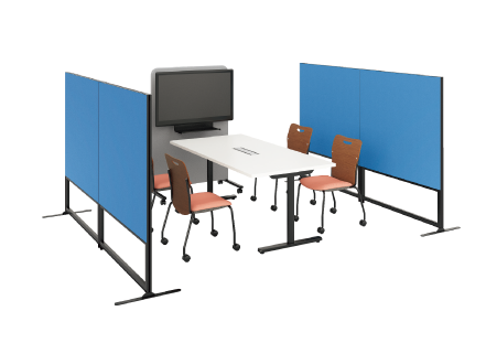 フレームを基本としたパネルシステムで、採光を保ちながら、オープンで緩やかに仕切られたスペースをつくれます。連結は工具なしで行える簡易施工タイプです。