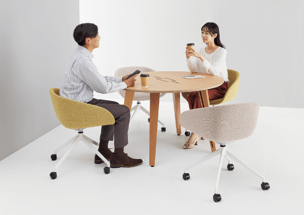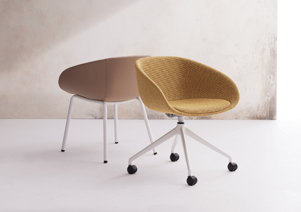 カジュアルからフォーマルまで多様なシーンになじむ、シンプル&モダンな張りぐるみタイプのチェアー。