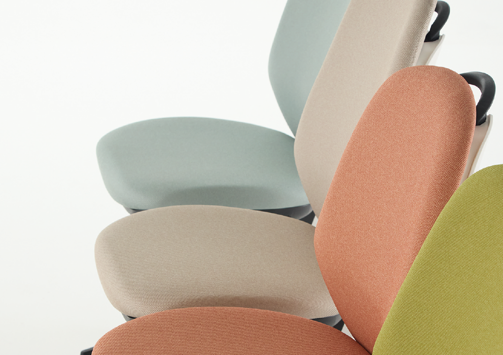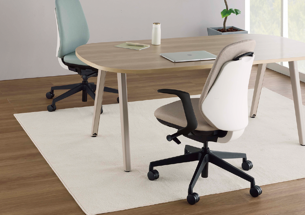 柔らかい丸みを描いたフォルム、エッジ部の段差によって美しい陰影を生み出すホワイト&ブラックシェル、そして、デスクへの出し入れに便利な取っ手がデザインのアクセントにもなるバックスタイルが印象的。女性・男性、体格に関係なく、誰もが快適な座り心地を楽しめ、愛着を持って使い続けられる「Tote back」がオフィスライフに彩りを添えます。