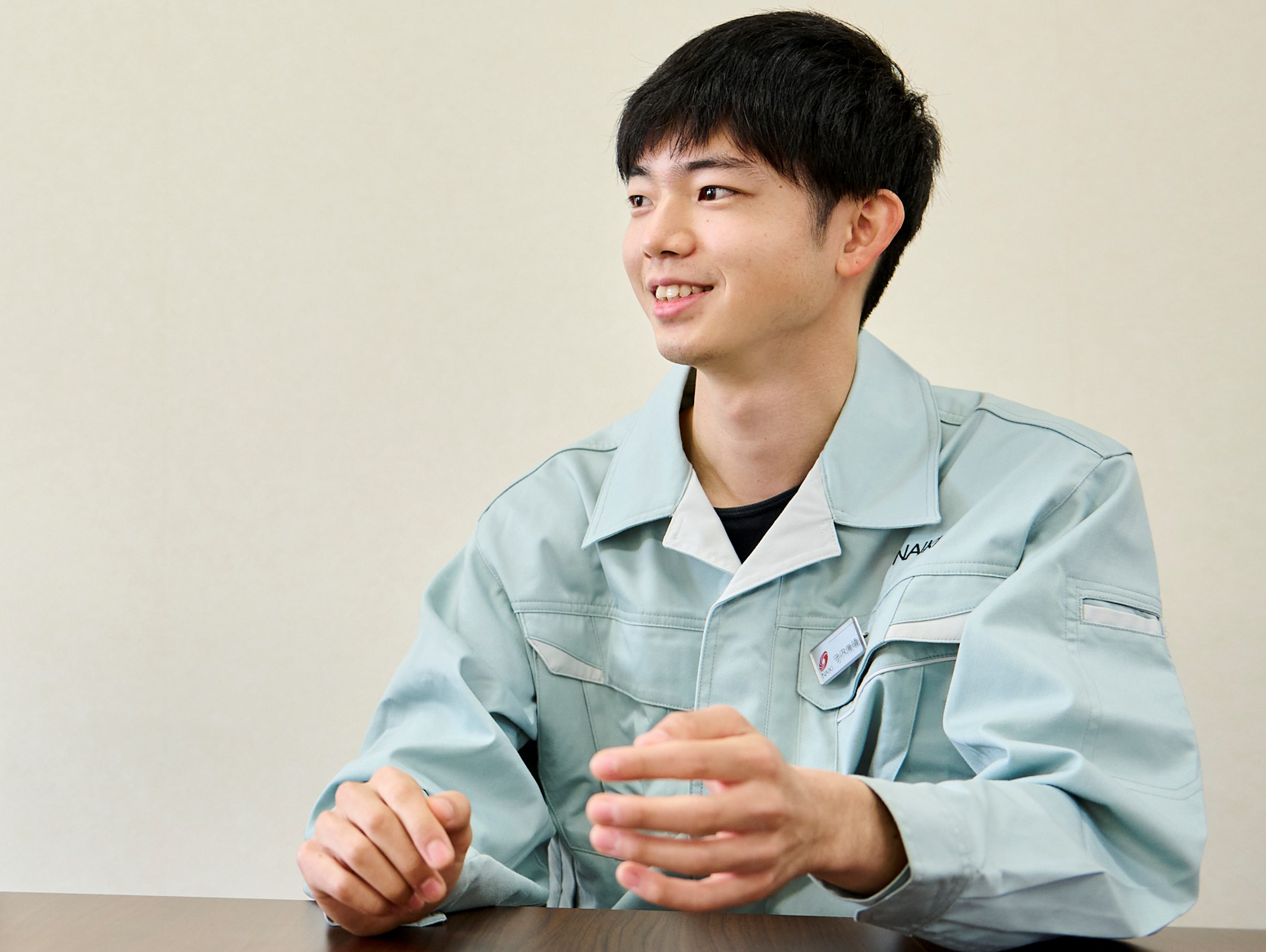 2年目ですから、まだまだ勉強中のことも多いですね。設備に不具合があったときには、まず製品を分解して、溶接の仕上がりに問題があるのか、電圧が足りないのか、またはプログラミングにエラーがあるのか、一つひとつ確認しながら誤作動の原因を突き止めています。