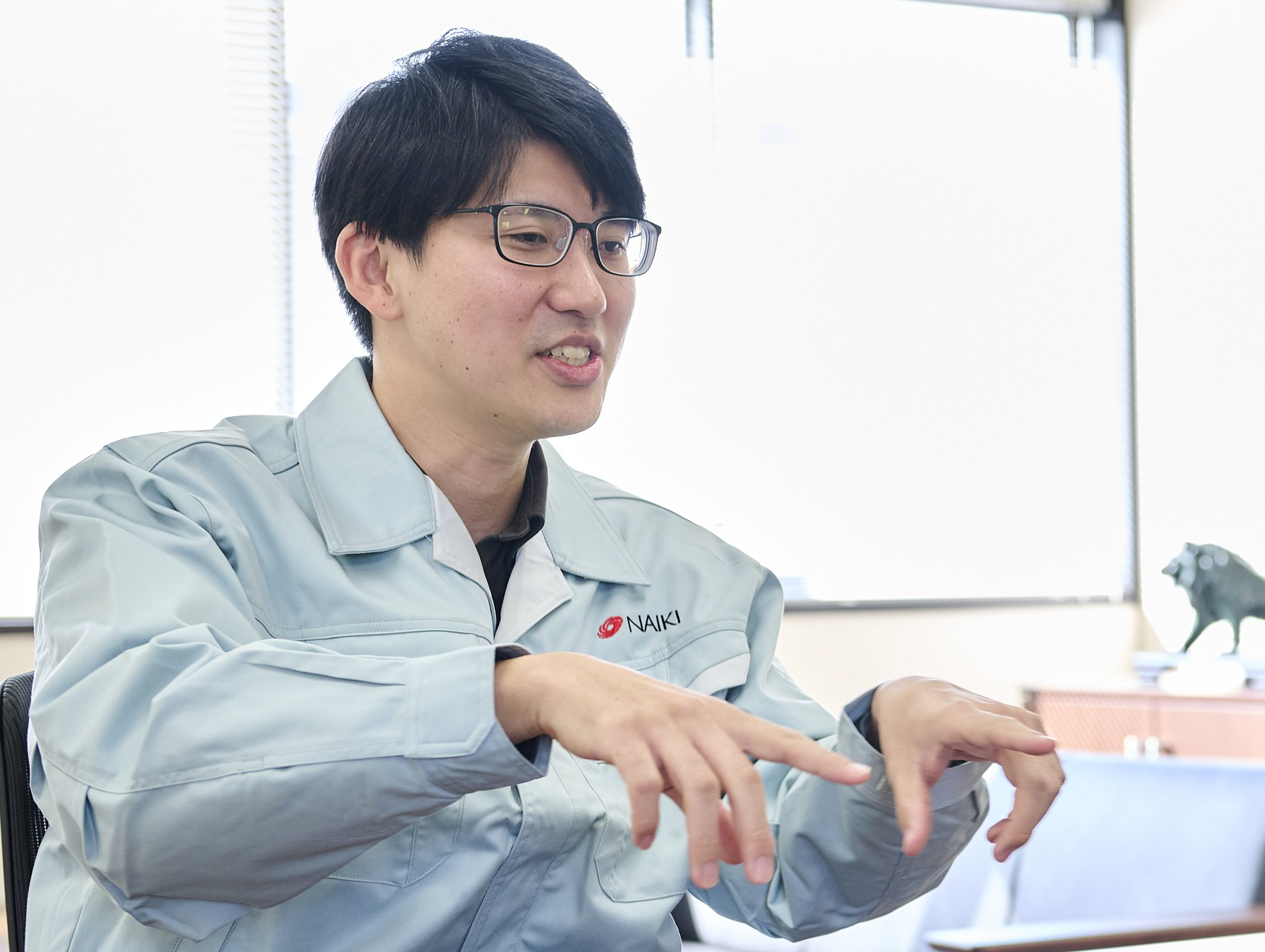 製品設計の仕事は図面作成ソフトを使うから、「ずっとPCに向かっている」みたいなイメージもあるかもしれないけど、設計業務って画面の中だけで完結するものではないと僕は思っています。製品にしたときにどれぐらいの強度が必要なのか、実際に現物を見て、触れることでわかることがよくあるからね。気になったらすぐ現場に行って現物を確かめながら作業を進めることも結構ありますよ。