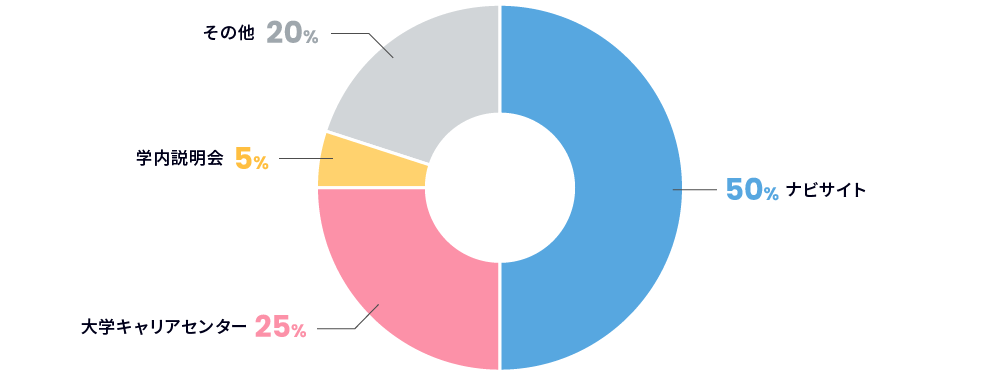 毎年ナビサイトに掲載して採⽤をしている当社。しかし、⼤学との関係も強いものがあり、キャリアセンターで社名を聞いてという意⾒も沢⼭ありました!中には通学の電⾞からナイキの⼯場が⾒えたという回答も!