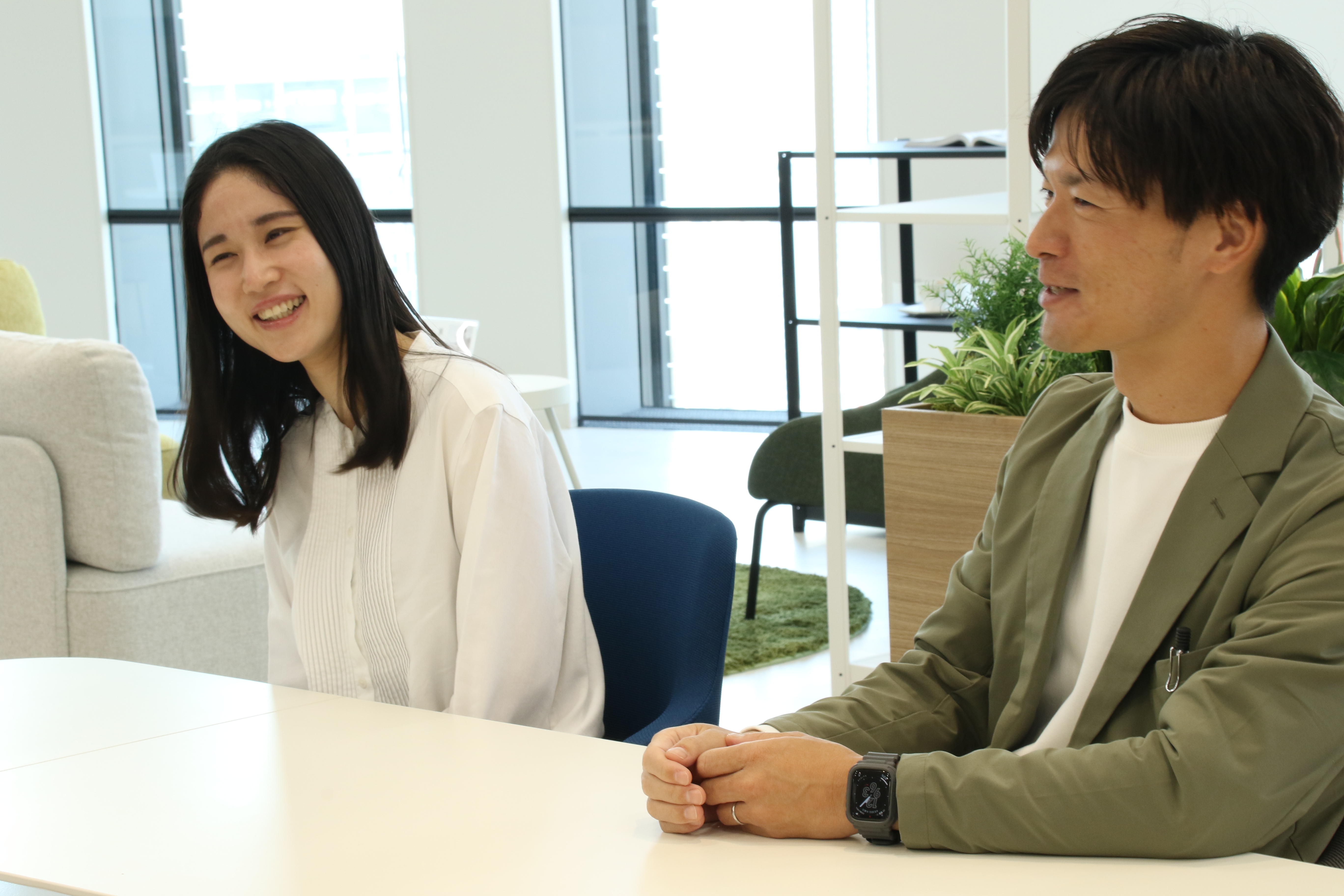 私も1年目から結構大きな案件に関わる機会があったんですけど 「大きい案件だから」って別の担当に振るのではなく、ちゃんと私に任せてくれた時は 「いい会社だな」って思いました。もちろん上司や先輩にフォローしてもらいました。 高本さんや内海さんにも日頃からお世話になっているので、「ほんと助かってます!」って感じですね。