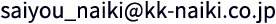 〒530-0005 大阪市北区中之島3-2-4 中之島フェスティバルタワー・ウエスト27階 株式会社ナイキ 採用担当 横山 宛 TEL 06-6244-9823 メールアドレス (メールの件名、応募者の連絡先を必ず記入してください) (迷惑メールとの混同を避けるため、「○○に関する質問」等、件名はわかりやすくお願いします) ※ご質問はメールでも受付いたします。 |