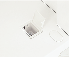袖引出しにはすべてラッチ機構を採用。地震などの際に引出しの飛び出しがなく安全です。