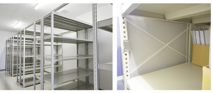 耐荷重にあわせたラックをリーズナブルに設計でき、備蓄品の保管に活用できます。