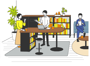 まわりから話しかけられることもあるオープンコンセントレーションの場です。ゆるやかに集中した作業を行うことができます。