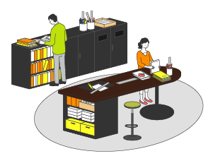 ライブラリー機能を持ち、資料を閲覧しながら個々の作業が可能です。集まったワーカーとの情報交換の場ともなります。